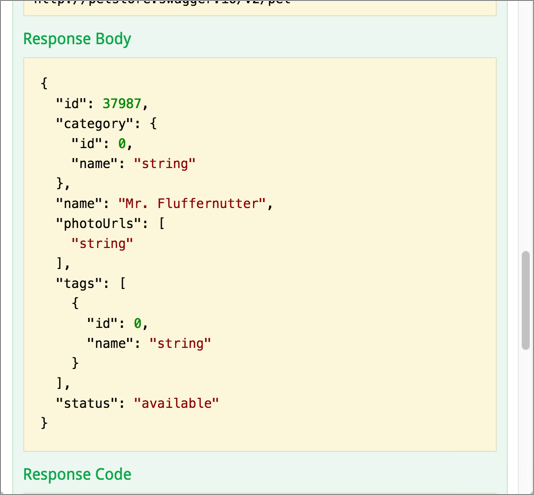 3.这里用 JSON 填充了 body value。这里的 JSON 是你必须上传的,用于创建 pet 资源。