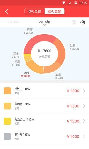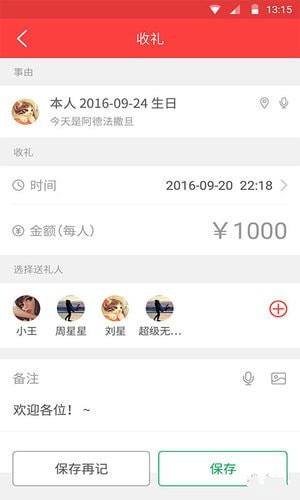 收礼、送礼的记录和统计,按人、按事随时查询,方便你的人情管理。