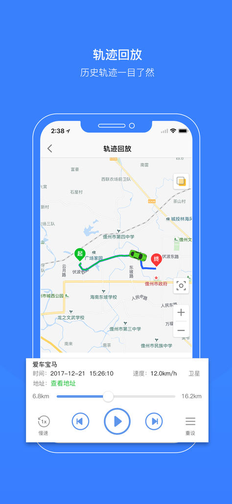 2.实时轨迹:随时随地掌握爱车位置信息。