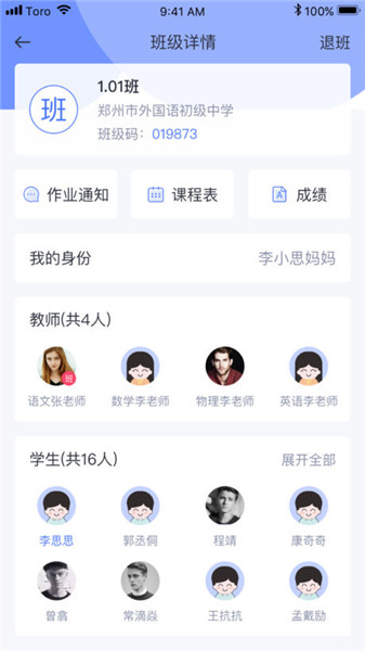 作业:老师随时布置作业方便快捷,形式多样课程表:课程表临时调课及时通知学生家长和相关老师