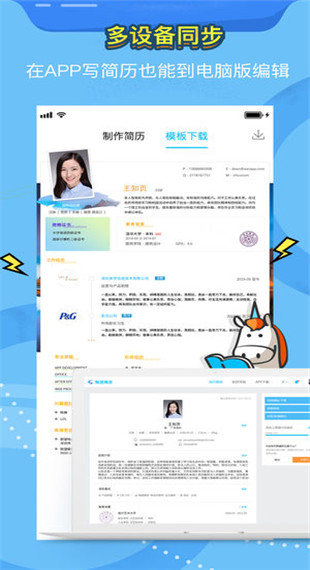 5、多设备同步:app写简历也可以到电脑版继续编辑。