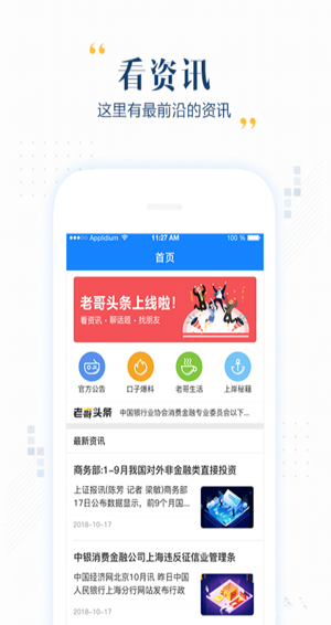 老哥头条app是一款优质的新闻资讯类软件,这款软件每天都能够为用户推送最新的时政资讯、娱乐八卦以及生活民生等方面的新闻,能够让用户做到不出门便知天下事。同时,该软件还支持社交功能,用户可以在这里找到志同道合的朋友,相互进行新闻点评。
