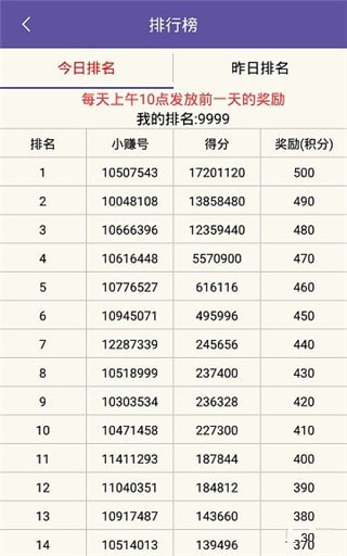 每天2048游戏该版本的2048引入了排行榜和比赛的机制。每天根据玩家的分数生成排行榜,前50名获得奖励。同时还会随机发放奖励给用户。