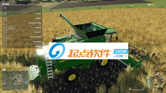 ②X键打开组合,B键开启组合,V键降下切割刀,这样就可以将收割机开入田野中开始收割工作了。