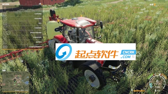 ③X键打开喷雾器,V键降下喷雾器,B键开启喷雾器,这样就可以将洒水机开入田野中开始洒水工作了。