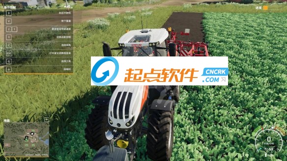 ①耕耘是为了翻松土壤,为播种做准备。那么同样先登入拖拉机,靠近后方播种机后,Q键连接起来。