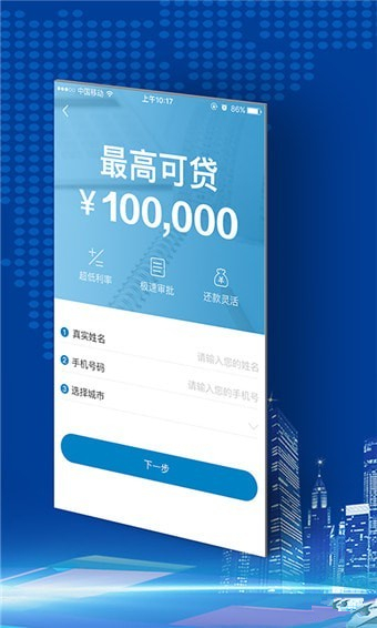 额度任性选:针对企业家、白领等不同的人群,我们设定了不同的额度,可以高额借钱100万,也可以借1000元急用;