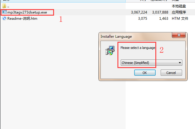 1.自该页直接下载Mp3tag软件包,解压并运行【1】处.exe格式文件2.双击【2】处打开可选择设置语言模式。