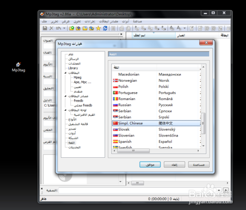如何设置mp3Tag的中文语言?【Tools】→【Options】会弹出设置窗口 →【Language】→选择【Simpl.Chinese】(简体中文)
