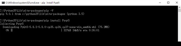 这里有个技巧,执行pip命令之后,它会自动寻找最合适(匹配你的系统、Python版本)的whl文件,文件名就是Downloading 之后的名字,即 PyQt5-5.8.2-5.8.0-cp35.cp36.cp37-none-win_amd64.whl, 百度下载这个文件就可以,链接直在这, https://pypi.python.org/pypi/PyQt5/5.8.2