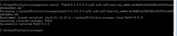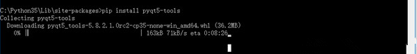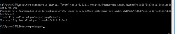 得到文件名称pyqt5_tools-5.8.2.1.0rc2-cp35-none-win_amd64.whl, 百度下载,链接 https://pypi.python.org/pypi/pyqt5-tools, 下载后直接安装, 命令 :pip install XXX.whl, 如下图: