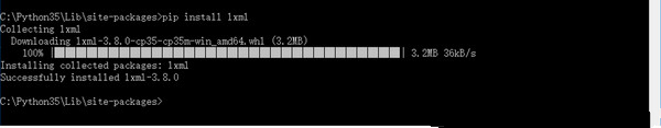 由于lxml文件很小,一般可以安装成功,不行的话,同上述方法,下载whl文件再pip安装。