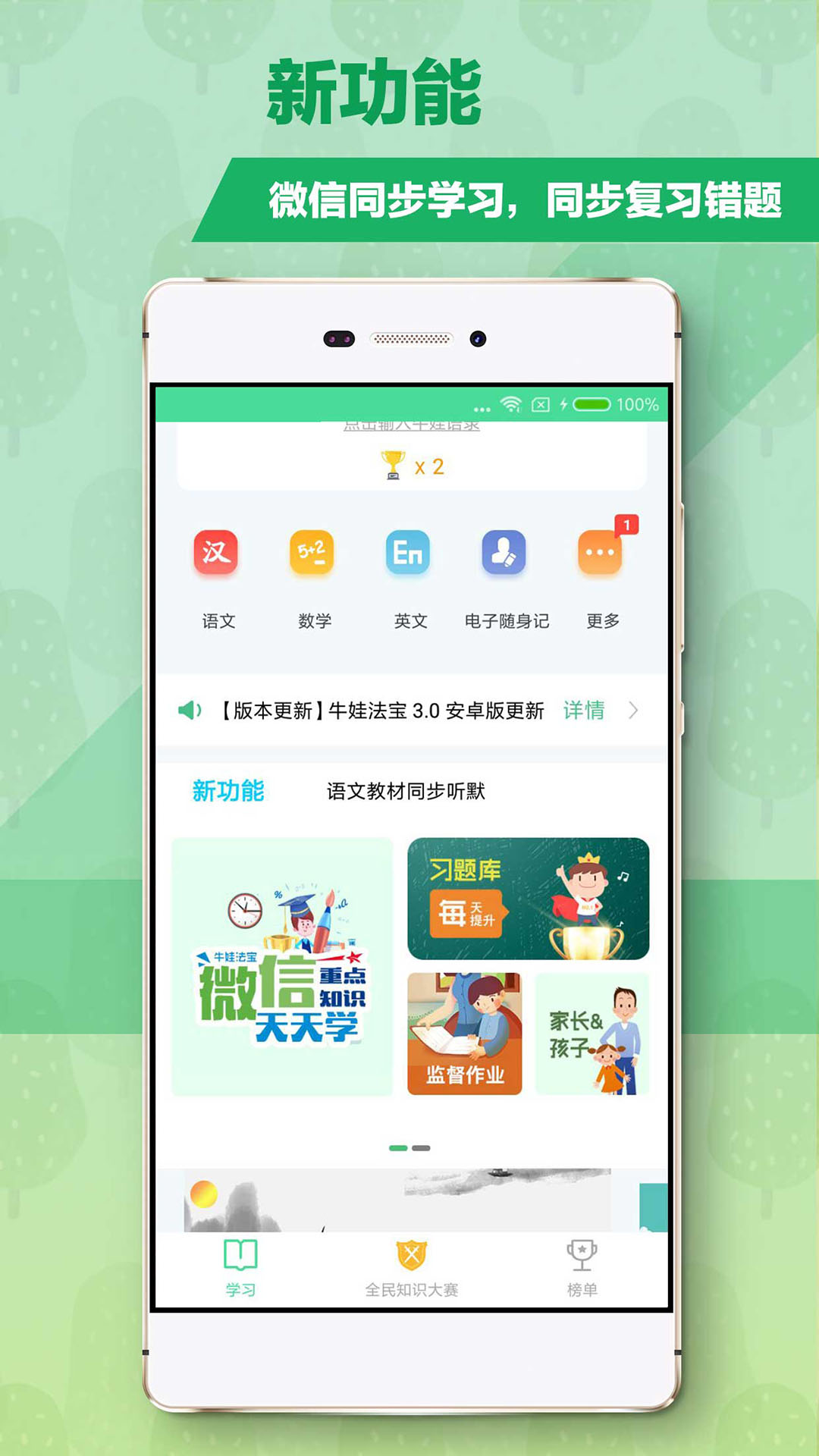 牛娃法宝安卓版是一款非常实用的学习软件,软件内汇集了超多的英语学习资源,让您可以快速掌握英语知识点。并且牛娃法宝app内还有排行榜功能,让您可以一边学习一边观看自己的学习名次。