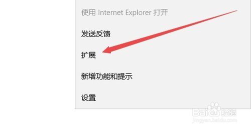 1.我们打开edge浏览器后,点击上面的工具按钮,在弹出的菜单中选择扩展菜单项