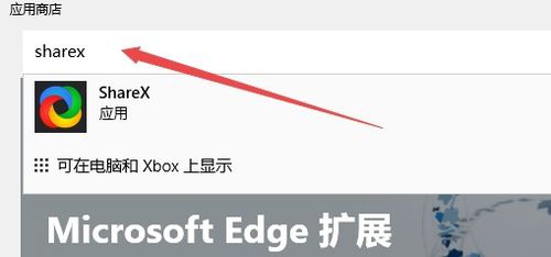 3.在打开的应用商店中我们输入关键词sharex,然后在搜索结果中点击sharex的图标