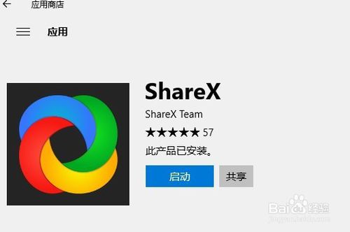 6.安装完成后,我们点击启动按钮,就可以启动sharex应用了。