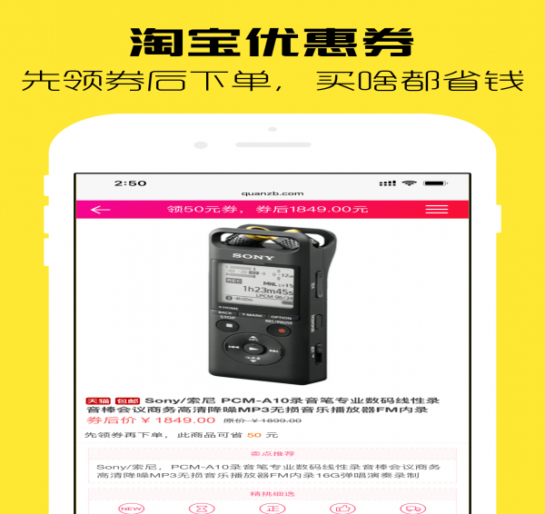 省钱优惠券app每天免费为大家提供各种商品的优惠券信息,帮您在购物的时候省钱,省一点便赚一点。每天更新成千上万款带有内部优惠券的商品,内部优惠券无条件使用,券后超低价格。本软件无须注册,打开即可使用,优惠券所提供淘口令需与手机淘宝配合使用。