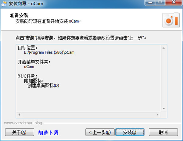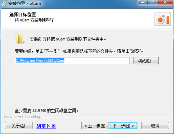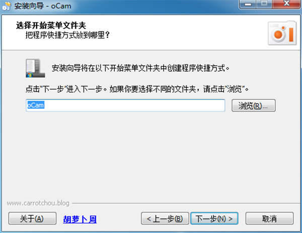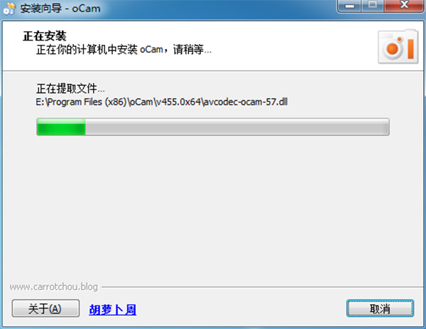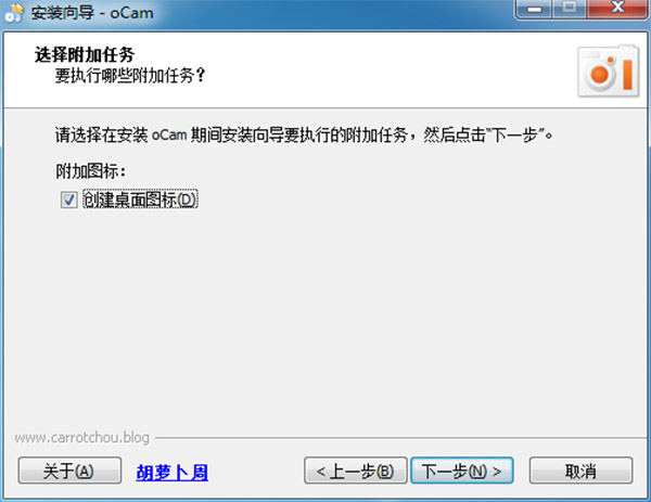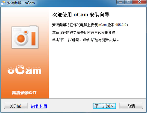 1、在本站下载oCam安装包,解压缩并运行,开始安装点击下一步