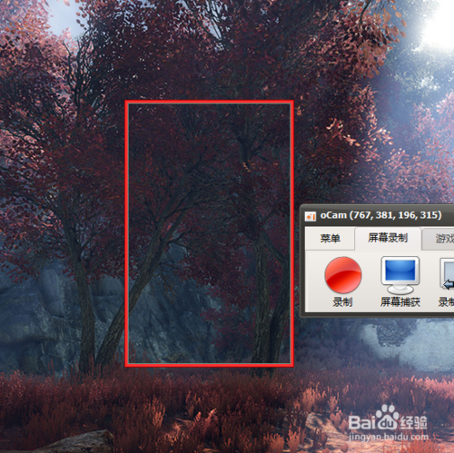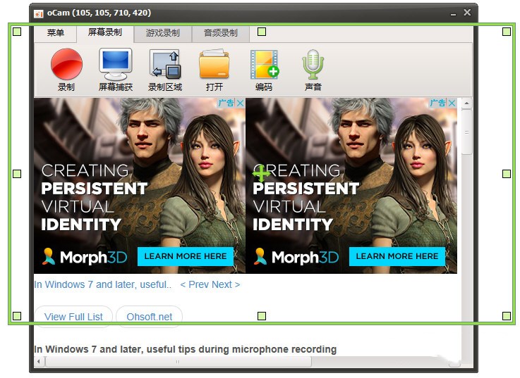 1.首先打开ocam可以看到一个绿色的边框。4个角都是可以调节的。