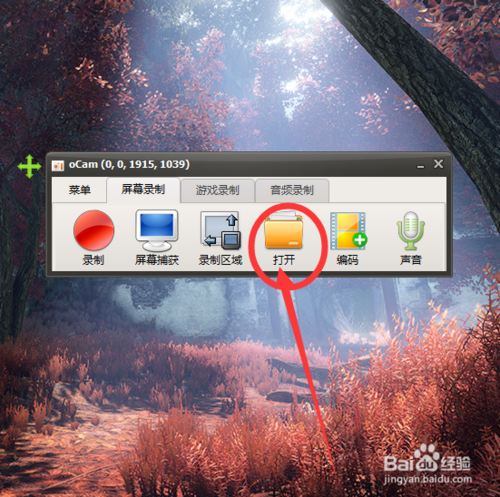 oCam中如何设置音频的编解码器:1.将鼠标移至上方操作窗口,点击“编码”。