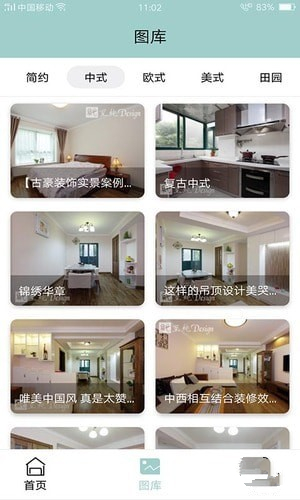 1、【高清装修美图图库】成套装修效果图,包括新房卧室、客厅、餐厅、厨房等空间效果图;装修风格包括美式、北欧、现代简约、混搭等;用户通过风格、空间、色系等选择,在安心住app可以快速找到想要的装修风格。