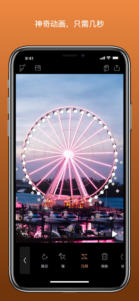 通过简单直观的UI,Enlight Photoloop app可以生成专业标准的动画照片。轻松移动小部件和使用工具控制照片中的运动。使用Enlight Photoloop苹果版让您通过相机特效,您能通过电影的方式模仿运动来获得创意。时尚相机效果包括倾斜、缩放和“多利”效果,实现透视变形。
