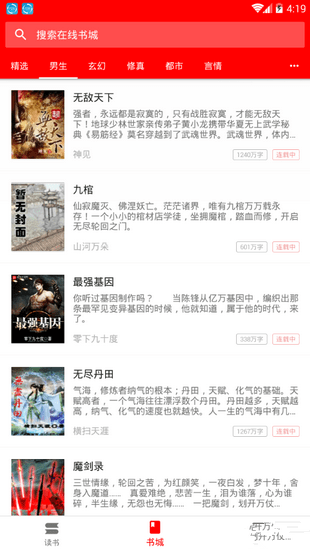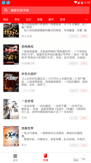 3、海量书库:书城图书繁多,种类齐全,包括玄幻、武侠、言情、都市、穿越、宫斗、历史、军事、热门、网络、经典小说。
