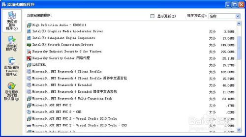 8、进入控制面板,在添加删除程序可以看到安装完成。