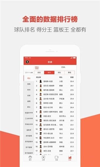 【数据】NBA/CBA球队排名、东西部排名、得分王、篮板王、助攻王等等,这里有专业、详尽的实时数据,篮球老司机必备。