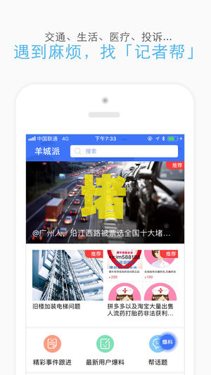 “记者帮”是羊城派的针尖产品,主打消费维权、公共服务协调及政务服务沟通。家里水管爆了没人修?诈骗短信好烦人?地铁何时才能开到家门口?只要进入羊城派的“记者帮”栏目留言,即可得到羊城派编辑、记者的跟进和协调解决,让你的无力变得更有力。