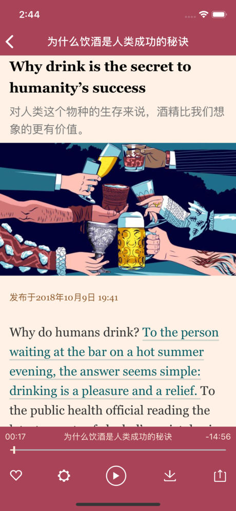 - 功能更完善:现在您可以缩放字体、分享、收藏、切换中英文、调整到夜间模式、搜索、按日期查看文章档案。还增加了视频和热门文章的板块。