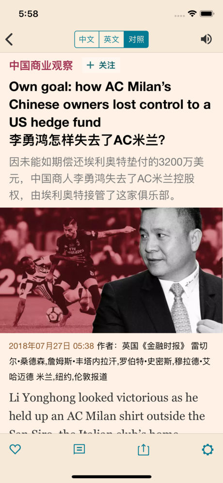 FT中文网是一款非常专业的商业财经资讯网站平台软件,用户可以通过这款软件及时的阅读到自己想要了解的财经资讯,并且还有双语言阅读功能,让你边阅读边学习其他的语言,而且还有专业的行业人士分析评论,非常的实用。