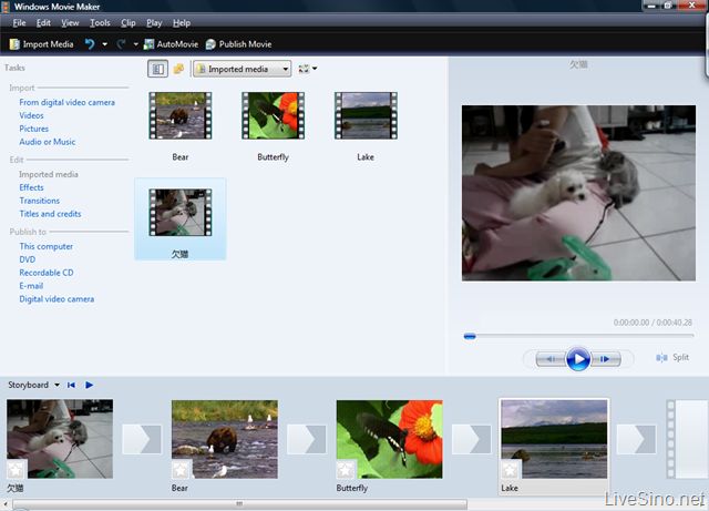 使用Windows Movie Maker可快速将照片和录像从 PC 或相机添加到影音制作中。然后,按照您喜欢的方式精心调整您的电影。您可随意移动、快进或慢放电影内容。