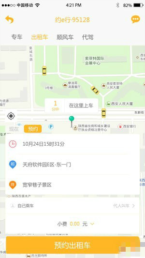 【即时与预约】约e行app是一项兼即时与预约两种服务的平台,当您准备出行时您可以使用约e行app即时约车;当您想提前预约行程,您可以提前预约三天后的行程。