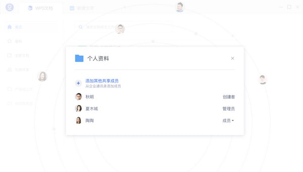 WPS文档是金山软件推出的一款文档在线协作办公软件,WPS文档给你未来工作方式,安全、同步,云端安全存储,文件实时同步保存,多人在线协作,告别资料反复传输,团队共享资料,支持成员权限控制。【软件特色】