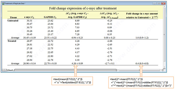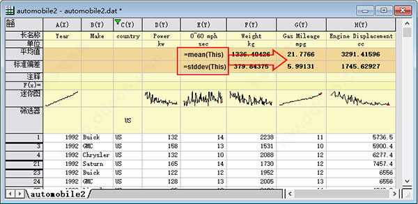 如此例子中,将公式输入到用户自定义的参数行,可轻松的计算出列平均值和标准偏差。在一个单元格中输入公式,并向右拖动,可以将公式延伸到右侧其他相连的单元格中。