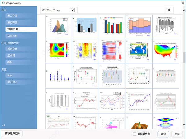 改进的 Origin Central对话框以便浏览更多图形样本,以及支持关键字和短语搜索。
