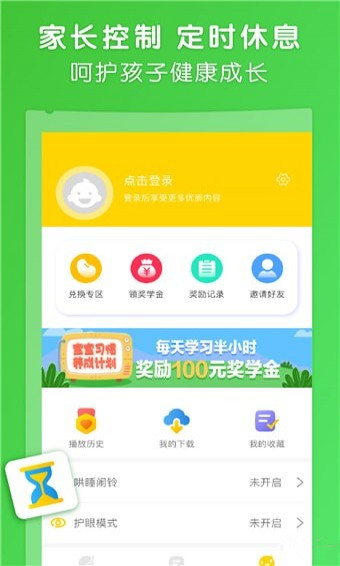 家长贴心设置——设置休息时间、作息时间,保护孩子视力,伙伴提醒,孩子易接受,防沉迷。