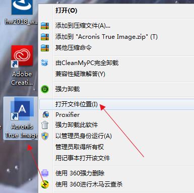 1.安装完成后回到桌面找到Acronis True Image 2019然后点击鼠标右键——打开文件位置