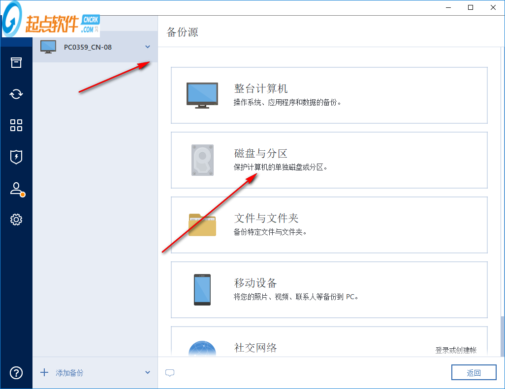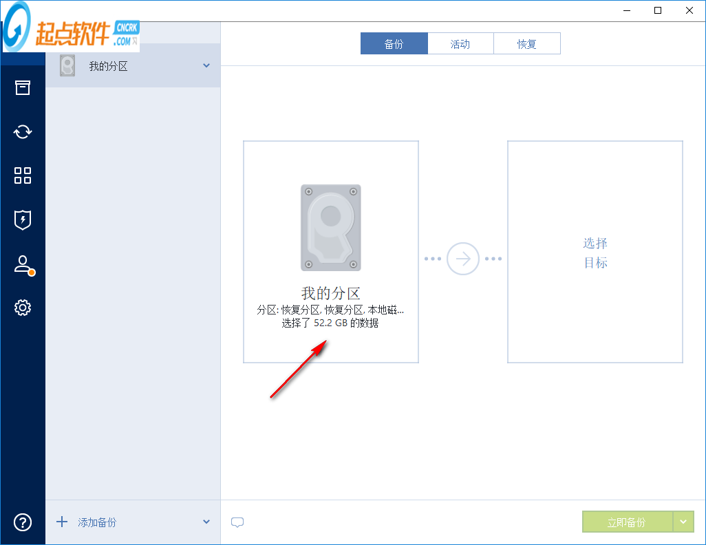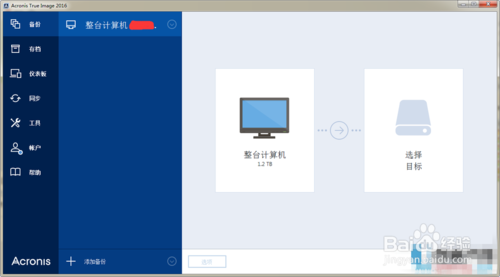 3、提示软件的备份界面,可以对目标选择,可以选择当前的计算机备份