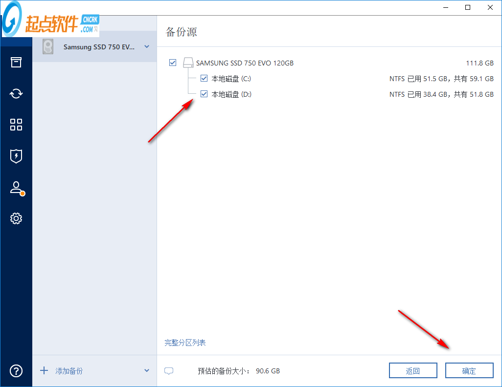 5、这里是磁盘的选择,可以提供多个目标,可以勾选C盘D盘