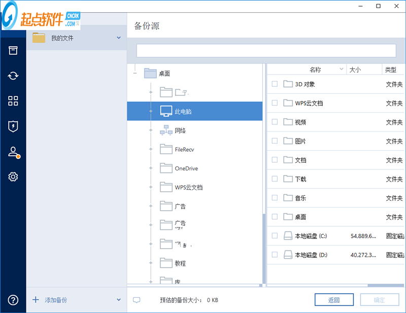 7、资源选择界面,在这里勾选需要备份的内容,可以选择3D对象、WPS云文档、视频、图片、文档