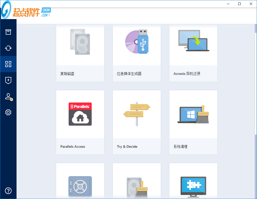 8、acronis true image 功能很多,支持复制磁盘、应急媒体生成器、 Acronis异机还原、系统清理