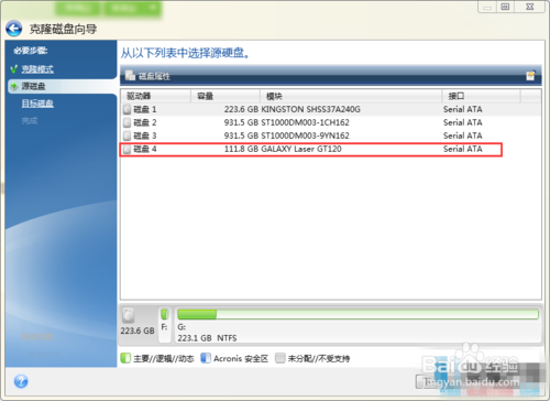 ▲选中源磁盘——我的断根的GT120G