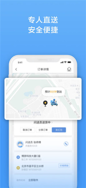 闪送员从您那里取件后,直接送达到您指定的目的地,无任何中转环节,真正即取即送。