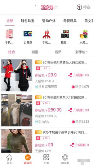 她券app同步各大电商精选活动,用户购物、分享分享高达90%的奖励叠加优惠券,省上加省。