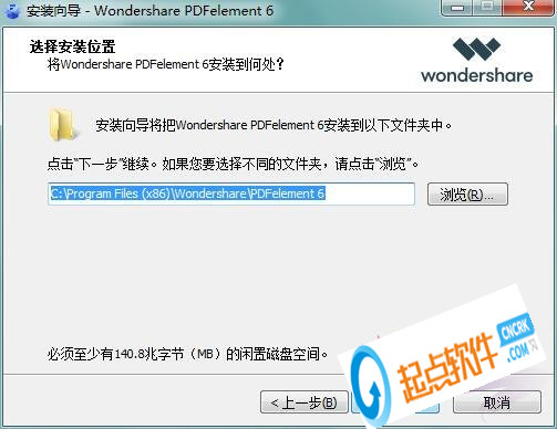 3、选择万兴PDF编辑器安装位置,默认的是C盘,想修改点浏览