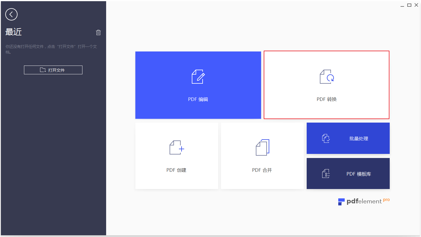 打开程序PDFelement 6后,您可以单击主页的“PDF转换”框。
