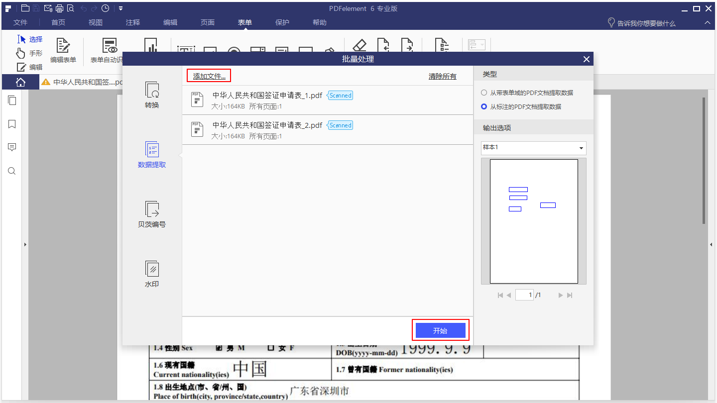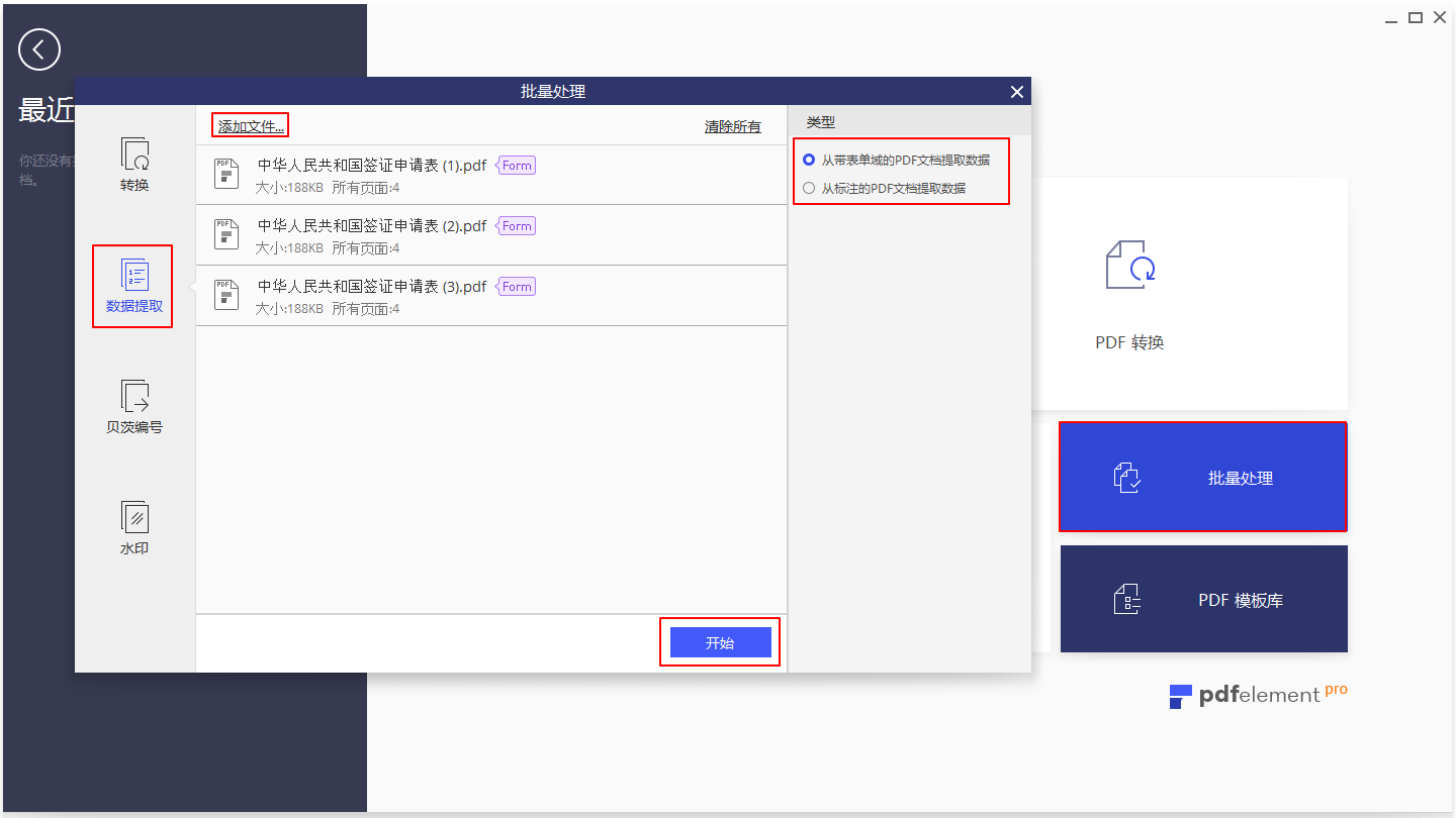 单击“数据提取”导入多个文件,然后根据需要提取选择“类型”。