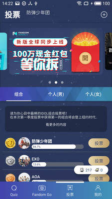 在此次上线的WAP版本中,“全球粉丝大赏”以及“首尔歌谣大赏-FandomSchool奖”的投票已在如火如荼地进行中,登录哈哈饭团WAP即可为idol应援投票。奖项会合计中方和韩方两方的票数,综合得分最高者得奖。